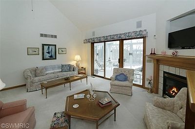 For details and more pictures, call listing Agent: Bill Virgo at (269) 488-0153. Attractive 4 bedroom condo features main floor living with lots of extras! Open floor plan with Cathedral Ceiling in Great Room plus skylights and gas log. The view is stunning from the 3 season porch. Open kitchen has oak cabinets, breakfast bar & newer appliances, adjacent laundry room, closet/pantry and entry to attached 2-car garage featuring storage closets and drop-down stairs to attic. Front entrance has ceramic tile and half-bath. Main floor master suite has cathedral ceiling & master bath w/walk-in closet. Upstairs is a full bath and guest bedroom with dual closets. An additional loft room which could be a bedroom, is currently an office. Over 750 sq feet of finished space on the walkout level includes a family room, cedar closet & private bedroom suite w/full bath. Plenty of storage available in unfinished area. Enjoy carefree living as the association fee includes: trash, maintenance & insurance (exterior), snow removal, lawn/leaf/landscaping care and sprinkling system.