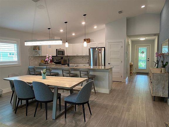 Adorable home built in 2021 in the heart of Sarasota. Designer furnishings from Crate & Barrel, West Elm, are blended with custom wood furniture. Situated in central Sarasota, Close to Siesta Key this spacious home is like new and designed to embrace indoor/outdoor living and entertaining. The short drive to Siesta Key, downtown, and the areas best dining makes this home the perfect location. A spacious lanai allows for great entertaining alongside a spacious deck for grilling. Upon entering the home, you will immediately notice the open floor-plan and vaulted ceilings filled with natural light. The kitchen has plenty of counter space and comes well equipped to cook a family meal after a day of fun in the sun. The primary bedroom includes a King sized bed as well as a private bathroom with walk-in shower, built-in dresser, and large custom closet. The secondary bedrooms share a bathroom, which includes a tub-shower. This home is thoughtfully filled with everything your family needs for a coastal beach getaway including games and beach equipment! The property is fully fenced with lush tropical landscaping. Guest will have private access to the entire property. Rental terms are flexible, open to longer leases. Furnishings can be adjusted to occupants needs.