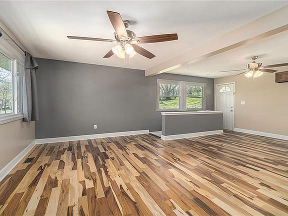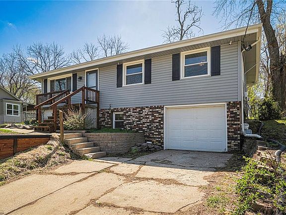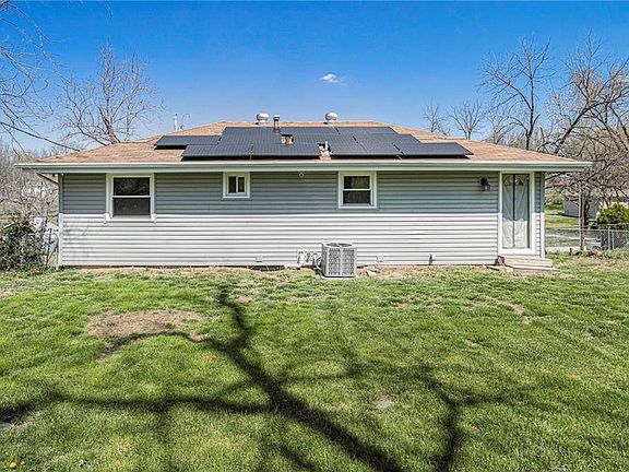 Updated & move-in ready 3 bedroom, 1 bath raised ranch. Open main floor plan with living room, kitchen, and dining space. Custom Brazilian pecan floors through the main level. Updated kitchen w/ new cabinetry, quartz countertops, marble backsplash, stainless appliances including dishwasher, gas stove, & microwave. Updated bathroom w/ new vanity, marble tile w/ shower over tub. New interior paint. Updated AMP & wiring. Newer vinyl siding, gutters, & soffits. New windows. Built-in security system. New fixtures & fans throughout. Tankless water heater & whole home water filtration system. Solar panels w/ lifetime warranty. Newly built retaining wall in the front yard. Over-sized fenced backyard. Close proximity to easy highway access. North Kansas City School District.