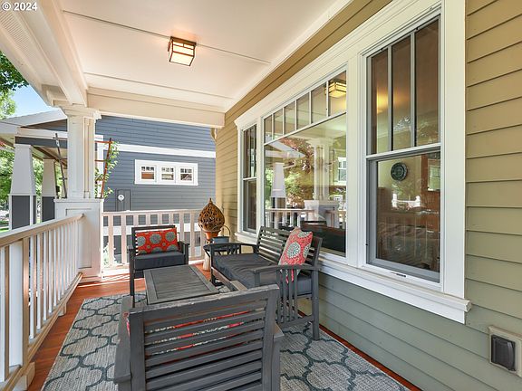 Old & new blend harmoniously in this distinctive Foursquare in one of Portland's most loved neighborhoods. Located on a peaceful, tree-lined street just moments to Beaumont Village shops and restaurants, this thoughtful restoration creates modern conveniences but still reflects the integrity and charm of a vintage home. Loaded with character, warm finishes, wood windows and White Oak hardwoods. The living room greets guests with a lovely wood-burning fireplace flanked by built-in bookshelves. The formal dining room is truly elegant with box beam ceilings, wainscotting and plate rail molding. The chef's kitchen has Quartz counters, high-end Viking appliances, double ovens, prep sink & pantry and opens to the Great Room; ideal for casual entertaining. Luxury primary suite with double sinks, soaking tub and one of the largest walk-in closets you'll see. RARE 4BD UP + Main floor office + Great Room + Lower level bonus. Upstairs laundry with plenty of storage and a sink makes doing laundry a breeze. Amazing outdoor spaces include a covered front porch with tongue in groove Fir, a covered back patio complete with ceiling fan and easy-care back turf for outdoor fun. Detached garage with storage, 220 and EV ready charging. Many thoughtful details & systems thru-out. (Front and rear entry mud rooms, abundant storage spaces & built-ins, two HVAC systems with separate thermostats, holiday light ready) [Home Energy Score = 2. HES Report at https://rpt.greenbuildingregistry.com/hes/OR10229773]