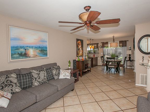Doll house!! Great curb appeal & covered patio, pretty solid with no visible structural issues, beautiful newer title throughout. Granite counter tops with nice tile backsplash in kitchen with island. Master bath total remodeled in 2019, roof 7 years old, 3 bedrooms, 2 full baths & 2 car garage. Well cared, moving ready!!
