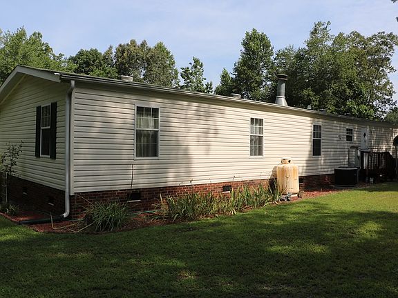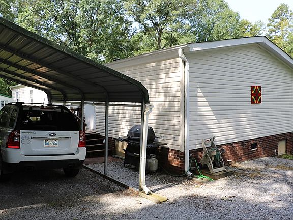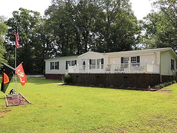 3BR/2BA Dynasty 24x72 doublewide on a dead-end road. 1-owner, well maintained. LR w/ new ventless gas logs/fireplace, DR, Master w/ 2 walk-in closets & new walk-in shower. Huge front porch 12x34 w/crankout awning. Detached dbl carport. Big 12x24 outbuilding with power, picnic shelter, and yard swing. HVAC 4 yrs old. Freshly painted in neutral colors. New waterproof wood flooring in the LR, DR, Kitchen, laundry room and both bathrooms. New carpet in all bedrooms.