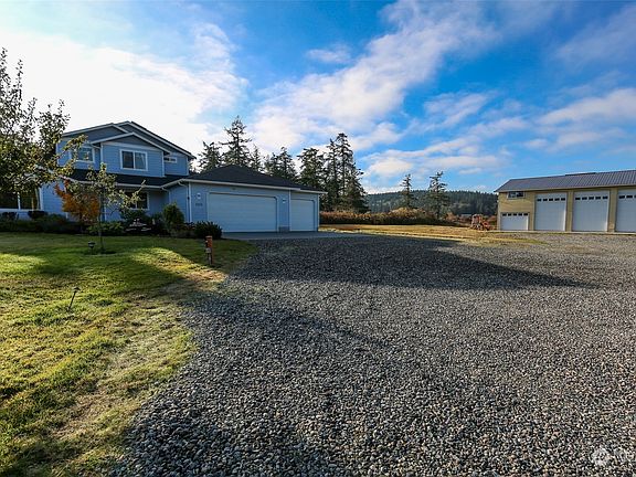 Beautiful acreage property w/private beach access! This spacious home offers open concept floor plan & formal dining & living space for flexibility. Main floor primary suite & dedicated office/den w/ generous sized bedrooms & huge bonus room above. Newer paint, flooring & SS appliances. Mature landscaping w/ fruit trees, garden space, irrigation system, & animal corrals. Level property has tons of potential for equestrian, hobby farm, target range & more! 1900+sf of shop space with loft storage will accommodate your RV, boat, toys & equipment. Equipped w/ generator, solar panels & EV charging in the attached 3 car garage. Enjoy views of Mt. Baker & nature's wildlife on the private community beach, trail across the street. A MUST SEE!!!