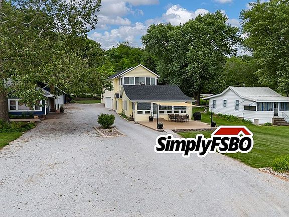 Price Reduced! Appraised at $610,000. Experience vacation living everyday without having to leave the QCA! This 3 bedroom, 3 bath home on the Mississippi River in LeClaire is one of a kind! Incredibly well-maintained and updated from top to bottom. This home features breathtaking views with 55 feet of water frontage with private cantilevered (maintenance-free) dock! The sea wall is prepped for additional docks. You will have access to calm, deep waters perfect for a float, swim or boat right out your front door. This canal home embraces “lake life” on the river! Windows abound along the front of the house with clear views of the river from the open concept main floor living area. The living room features the original fireplace with a remote gas insert that quickly warms up the whole space. Easy access to the large patio with seating, grill and structures in place for sunshade. The primary bedroom is on the main floor and has a walk-in closet and ensuite bathroom. The great views continue upstairs from the large 4-season room with 180 degree views of the river. Additionally, the second floor opens into a bonus space with coffee bar, two bedrooms (one with 2 queen size beds), and a full bath. There is another full bath on the main floor easily accessible from the driveway entrance, mudroom and two car attached garage. A “dog run” and screened in sitting area can be accessed from the side entrance. There is also a 12’ x 22’ shed to accommodate water toys, lawn and garden items, etc. Main Finished 1,275 SqFt Upper Finished 1,015 SqFt Total Finished 2,290 SqFt