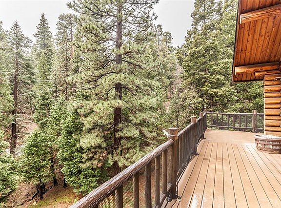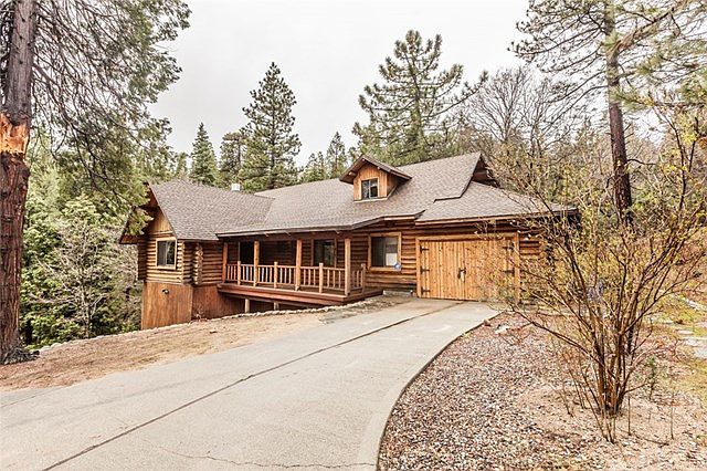 Welcome Home! Looking for a weekend retreat or a forever home, this is it. Fall in love with this one of a kind custom log home nestled among the beautiful trees on almost one acre of land. Private, secluded and serene this charming home is located in Cedar Glen and features hand selected lodge pole pine logs from Montana. Vaulted ceilings in the entry, great room and formal dining room. Light and bright with an over sized A-frame window located above the sliding door to capture the south facing sun. A warm and cozy grand brick fireplace to enjoy on those cold winter nights. Three bedrooms on the main floor, a full bath and a nice size kitchen complete with an eating area. A huge master bedroom on the upper level, a walk in closet and a private deck. A wrap around deck on the front side of the home overlooks a seasonal creek, a perfect setting to enjoy your morning coffee. Indoor laundry including a new washer and dryer, a newer roof, a one car garage or shop and a generator. Not far from Lake Arrowhead Village and all the shopping. You will love it!!