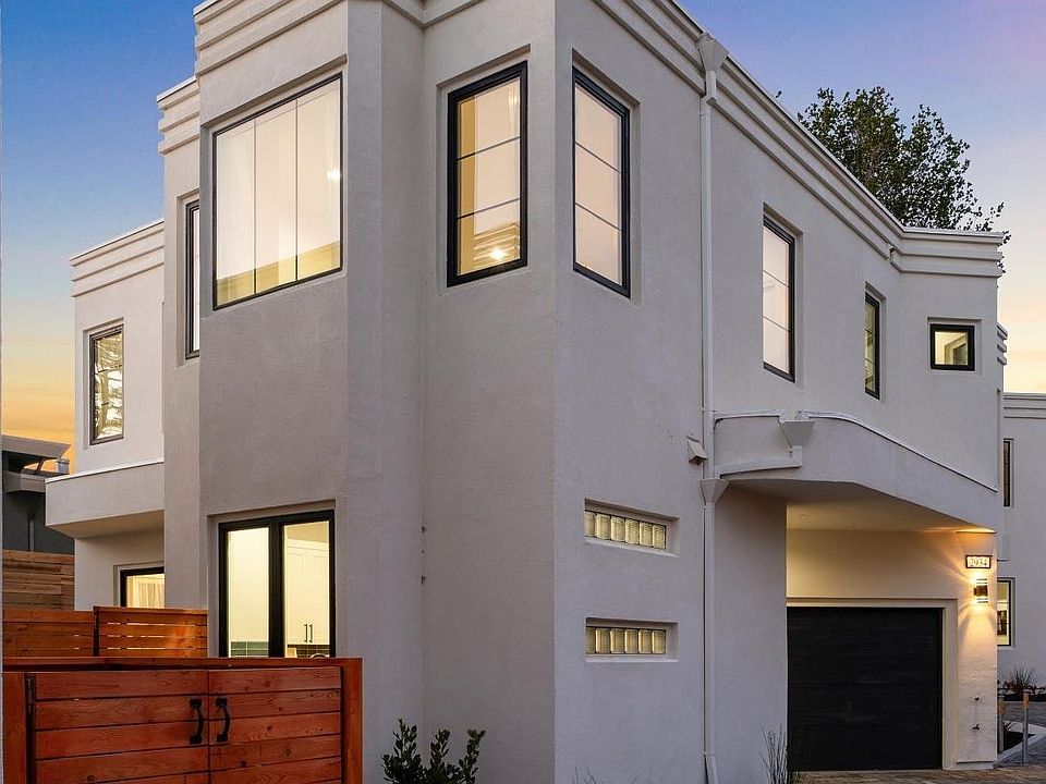 BRAND NEW open plan nestled in a sweet enclave of new homes in Upper Dimond, a hidden gem neighborhood. Crafted in the spirit of the 1930s Streamline Moderne design movement, this home has a focus fusing historically inspired architectural design w/ 21st-century new construction standards. The home offers 3 beds & 2.5 baths spread across 2 sunlit stories w/ tall ceilings & BIG natural light. Modern details w/ curving cruise-liner corners, long horizontal lines, & modern-yet-elegant spaces defined by indoor/outdoor connection. Deco-style block windows emit a warm backlit glow throughout the main living areas yet still private. Spiral staircase leads to rooftop patio, boasting peaceful bay views. Crafted details such as geometric metalwork, wide plank oak flooring, recessed lighting, & custom tile lend a distinctive, artisan quality to the home. Built to the latest energy efficiency and seismic standards, w/ stainless steel appliances, tankless water heater, fire sprinklers, EV Charger ready 1-car garage, bonus storage, ample closet space, & 2nd floor laundry area w/ stacked w/d dryer hookups. Close to East Bay hotspots via Highway 13 & 580 minutes from Montclair, Dimond/Laurel, Woodminster, & Joaquin Miller Regional Park. EZ Pricing to SEE IT, LIKE IT, BUY IT