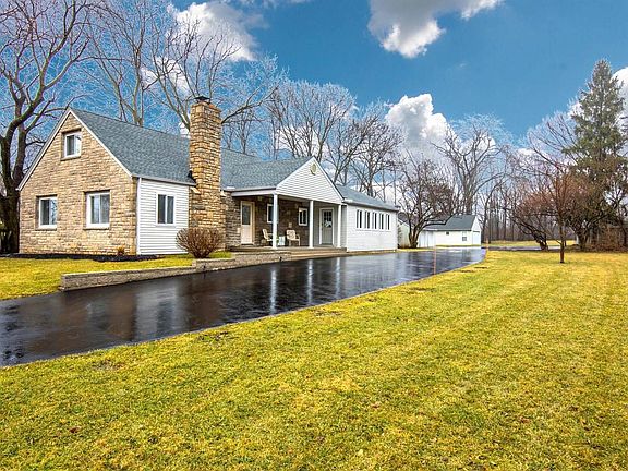 This meticulously maintained Cape Cod home offers all the serenity of country living without giving up city convenience! The inviting porch and screened shelter house offer the perfect venue to enjoy the wooded 2.71 acre lot. The spacious family room is bathed in natural light and boasts stunning vaulted ceilings, sliding glass doors, and two large closets. Kitchen features include granite counter tops, eat-in bar, and a smooth top electric range. Two bedrooms and a full bath on the first floor, as well a half bath and third bedroom on the second floor. The carpeted, lighted attic space provides even more storage. The partial basement features a full kitchen, dining area, laundry, living area, and large crawl space. The property also provides two separate 2 and 3 car detached garages.