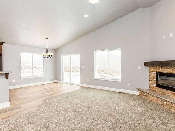 $42,016 in UPGRADES included in price. Pearl Peak 1 a 1,548 sq. ft. 3 bedroom, 2 bathroom floorplan. Standards: Full Stucco Exterior. White Shaker soft close cabinets, LED Lighting throughout. Black Stainless Appliances. Two tone paint, upgraded lighting and plumbing packages. Low-E high efficiency windows. Built on a heated crawl space. Front landscaping and rear fencing included. $42,016 in UPGRADES include: Lot Premium. Tile floors throughout with presealed grout except bedrooms which has upgraded carpet. Tiled in Guest shower with bench seat and extra shower heads.Upgraded sinks and plumbing fixtures in bathrooms. Farmhouse sink in kitchen with reverse osmosis system and oversized island withextra cabinets upgraded quartz countertops throughout. Larger fireplace with upgrade corner fireplace package in family room. Dryscaping in backyard. Check with builder representative for timeline. Pictures of previously finished homes.