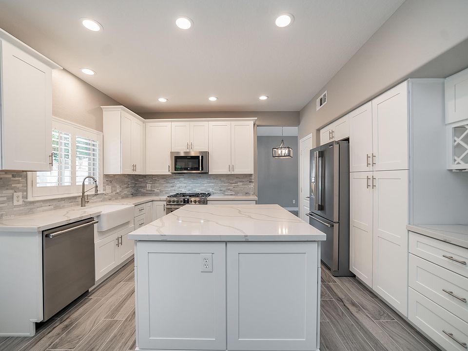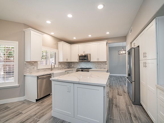 Way Over $100k was spent in this completely re-modeled home.High quality porcelain wood floors,Top of the line Appliances,5 burner gas stove, micro convection, refrigerator with 2 ice makers, Farm Sink, solid wood cabinetry Thru-out. large island w/ multiple slide out shelves w/ all soft close drawers & doors in kitchen, baths and laundry. Plantation Shutters on all windows.Hunter remote ceiling fans thru out. Stunning Bathrooms, Master shower is finished 5.5x6' marble shower with rain shower head and bench seat. All new flooring. Garage flooring Epoxy, the garage looks brand new also. Lots of parking plus Rv area. Backyard has lots of shade trees. A great Neighborhood close to Mountain View High School. Gorgeous Home ready to have a new Family.
