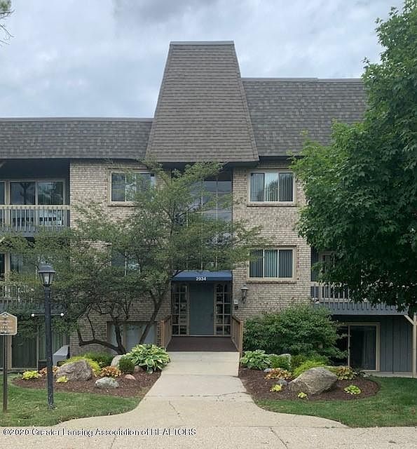 Great Okemos condo The Chateau. Larger custom unit formerly owned by the developer of The Chateau. Two bed/two bath with gas fireplace. Master has large walk in closet and master bath. All new windows and sliding glass door to patio in Sept 2019-patio is the length of the unit 5'x35'. This unit is sold as is, needs a bit of TLC. There is a laundry facility at the west end of the building first floor, and the storage bin on the 4th floor #208, carport on west side rear #208.
