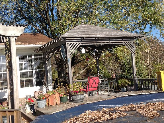 Amazing view. Remodeled interior 2010. Double carport. Heated workshop. Deck with view, gazebo, archway, and above-ground pool. 3 bedrooms, 2 on-suite baths, walk-in closet, fireplace, new a/c plus gas heat. Hand made oak cabinets and pantries. Abundant storage, cabinets, and closets. Sun room has three walls all windows. 1.4 acres. On paved highway. This house was remodeled by an experienced builder and artistic craftsman. Circle drive. Plenty parking for boat, motorhome, etc. Yellow sand stone exterior. Covered front sitting porch.