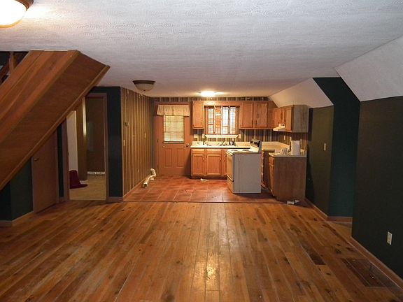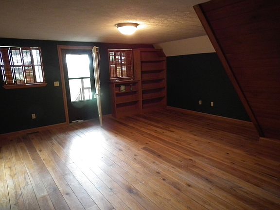 This 3 bedroom A-Frame is nestled among mature trees and offers an open floor plan, kitchen, dining and living room. Two baths, electric heat pump, and county water. Located just off US 460.