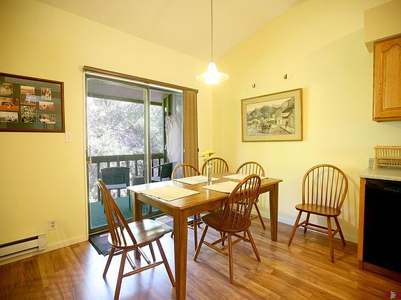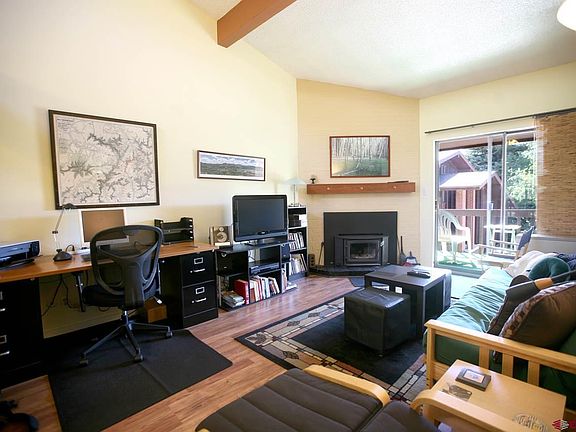 Located at the back of the Sunbird complex, this upper level unit provides privacy and quiet. Nice wood laminate flooring throughout the living, dining and kitchen areas coupled with the vaulted, exposed beam ceiling creates a warm open space in this condo. The living room offers a wood-burning fireplace and sliding glass door access to a covered balcony deck. The kitchen is the heart of the home the ample cupboard space and black GE Appliances. The dining area also offers sliding glass door access to another balcony deck. The master contains a private bath and a walk-in closet. An additional bedroom and bath round out the condo. These homes rarely come on the market - and given the location and value...this one won't last long!