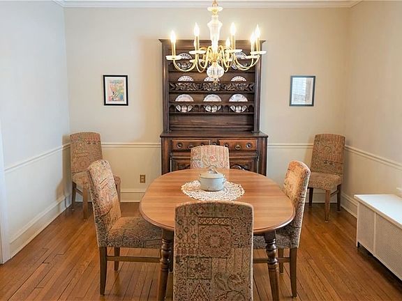 Lovely, center hall Colonial has beautiful hardwood floors, 5 bedrooms, 3 full baths and an updated kitchen. This house has been exceptionally well maintained. The bright and spacious living room features high ceilings, crown molding and a beautiful marble fireplace. It opens to a family room/sun room with built-in shelves and a door to the rear patio. The dining room is also bright and features chair rail molding. The kitchen was completely updated in 2007. It features custom-designed cabinets in an off-white color. The kitchen also features granite counters with an under-mount sink, center island, and stainless steel appliances. There is also a very quaint eating area. There are four bedrooms and 2 full baths on the second floor. There are hardwood floors in all the bedrooms. The master bedroom has a private en suite bath and very large dressing room with custom built closets. The finished 3rd floor features a spacious, carpeted bedroom, full bath, and large storage area. The heating system was updated in 2011; and the roof was replaced in 2009. This house has beautiful landscaping with a deep backyard, and aslo features a stone path. The garage is newer and an asphalt drive was replaced with concrete in 2016. This is a beautiful home that you will not want to miss!
