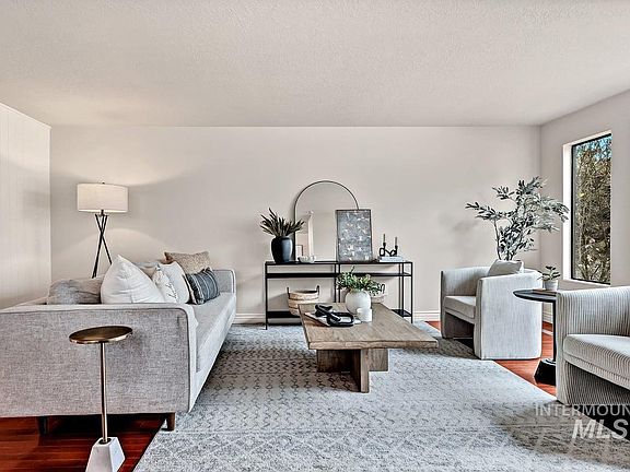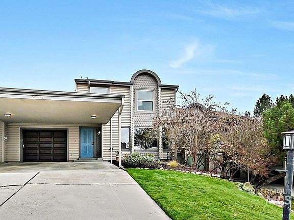 Updated North End townhome backing to the Harrison Hollow Trail system with sweeping foothill views! This 3-bedroom, 2.5-bath home features open-living areas with hardwood floors on the main level and bright, sun-filled windows. The thoughtful layout includes a generous living room and large dining area flowing into the kitchen, with dual sliders opening to an expansive patio overlooking Boise’s foothills—perfect for entertaining or relaxing. Upgrades include new carpet and pad, interior paint, light fixtures, kitchen appliances, plus recently new furnace, AC, and water heater. The 1-car garage, 2-car carport, and rare 4-car driveway offer ample parking. Trail access is right out the front door. Move-in ready for the holidays with low-maintenance living—HOA covers common area irrigation, exterior siding, and roof.