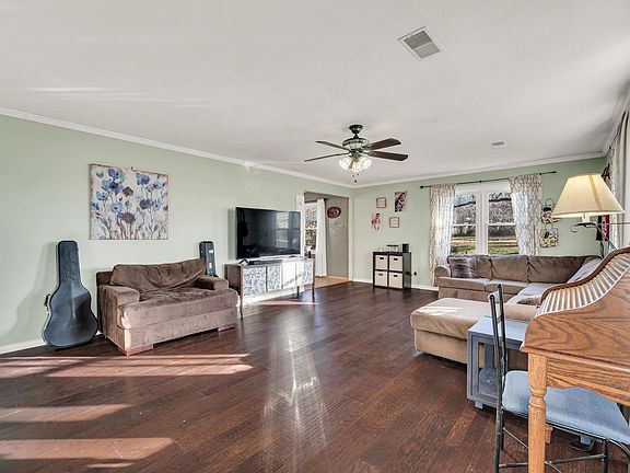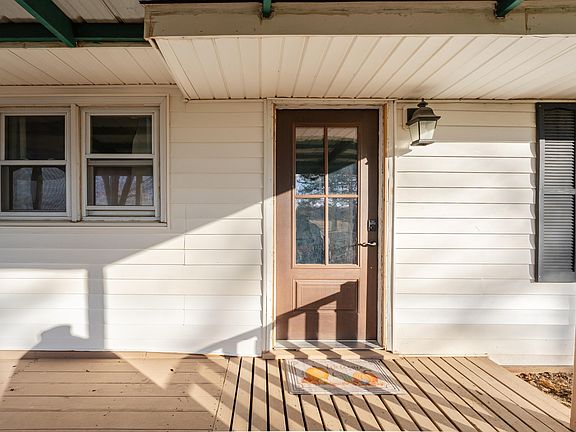 Experience the serenity of country living in this picturesque home. Enjoy your own fishing pond, historic barn, and 3.3 acres of landscaped land. The covered front porch and sun room on the back offer inviting spaces. With a newer insulated roof and engineered hardwood flooring, this home seamlessly blends modern comfort with rustic charm. The large cedars surrounding the stocked pond create a peaceful outdoor oasis, where you might even catch glimpses of deer and turkey. The old barn with garage doors provides ample workshop space for various hobbies and storage needs, including a lofted area for extra storage or personal space. A perfect blend of tranquility and practicality..