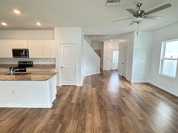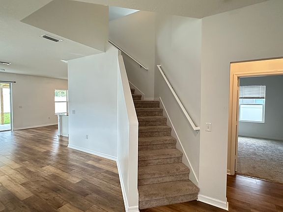 Immediately available, 5 bedrooms, 3.5 bathrooms, and a 2-car garage, offering over 2, 251 square feet of thoughtfully designed living space the newly installed vinyl-fenced backyard provides privacy and a safe area for recreation. Upon entry, the open and inviting floor plan is accentuated by soaring ceilings a welcoming foyer. From here, can access the master suite the staircase to the second floor, a guest bathroom, and the main living area. The spacious kitchen, dining room, and family room are located at the rear of the home, providing stunning views of the meticulously landscaped backyard, making an ideal space for entertaining. The main level showcases elegant laminate flooring, while the master suite and upstairs feature plush carpeting. The kitchen is equipped with a large island sink, abundant countertop space, and ample cabinetry, catering to culinary enthusiasts. The main floor also includes the suite, which boasts a generous walk-in closet, dual vanity sinks, and a walk-in shower with an enclosure. Conveniently located nearby are the laundry room and garage access. On the second floor, are four spacious bedrooms, two full bathrooms, and an open loft area that can serve as a game room or additional living space, complete with its own storage closet. The community offers amenities such as a playground and park area and is conveniently located near I-75 Cortez Blvd. With Disney just over an hour away and easy access to Tampa, Dade City, and Brook, this residence combines comfort with convenience.