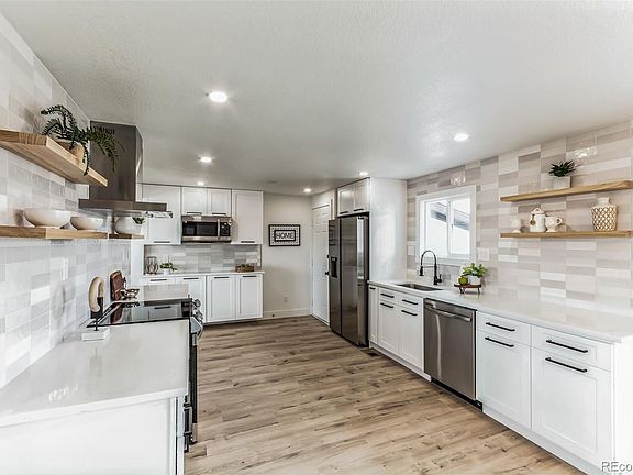 Welcome to your 1+ ACRE HORSE PROPERTY! This stunning home property features a huge OPEN FLOOR PLAN that includes a primary bedroom complete with a walk-in closet. Enjoy the BRAND NEW stainless steel appliances in the kitchen, counter depth refrigerator, PLENTY of CABINET SPACE, quartz countertops and new luxury vinyl plank flooring THROUGHOUT THE ENTIRE home. Entertain with a SPACIOUS FAMILY ROOM in the fully finished basement that includes a WET BAR, or unwind on the beautiful COVERED BACK PATIO offering breathtaking SUNSET MOUNTAIN VIEWS in your OWN PRIVATE BACKYARD— FAR away from your neighbors. The oversized 4-car garage, along with PLENTY of RV PARKING, makes this an ideal home for any auto enthusiast or work vehicles. Set on a large lot, this home is perfect for those seeking space for a horse, atv, or room to roam. Additionally, the ENTIRE PROPERTY HAS BEEN UPDATED— like a brand new home— with new double-pane windows, new siding, brand new gutters, new HVAC system, new air conditioning, new furnace, new water heater, double sink vanity bathroom, and fresh coat of interior & exterior paint. Extra touches like CUSTOM METAL RAILINGS have been added to this impressive home. Only minutes away from Walmart, fast food chains, gas stations, The Course at Petteys Park, & Ace Hardware. Only a little over an hour drive from Denver. Whether it's cozy evenings or large gatherings, this property will accommodate. Don't miss out on making this your new forever home!