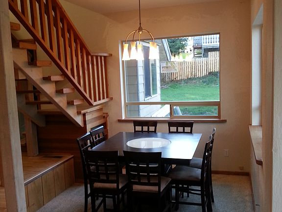 Exterior Features:Large 3 level home on 15,000 sq ft lot. New partial siding. New composite shingle roof. Upgraded heat pump. Attached garage with remote garage door opener. Huge backyard. Beautiful trees and creek. Arched bridge. Deck. Interior Features:Spacious interior living space, high vaulted ceilings, beautiful wood staircase leading to upper levels. Kitchen: new stove, dishwasher, refrigerator, built-in microwave. Bathrooms: sink, toilet, tub present. New windows and sliding doors in living area. Heat pump. Indoor laundry hookup. Owner may carry with down payment.