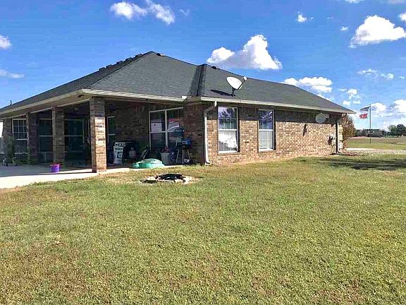 Sits on 5 acres. Open floor plan, large kitchen & dining area, raised ceilings, office, a mix of tile, wood laminate, and carpet to make this home cozy. Granite countertops in the kitchen, jetted tub and huge walk-in shower in the master bathroom with double shower heads not to mention a walk in closet the size of a bedroom. Over-sized three-car garage, conveniently attached to the home with an in-ground steel storm shelter to provide safety and great utility for the homeowner. Two separate air conditioners, huge pond, in-ground swimming pool and a 24X30 shop with two lean to’s measuring 16X30 & 14X30. The over-sized, covered back porch provides a great place to relax and watch the beautiful sunsets. New roof in Oct. 2020.