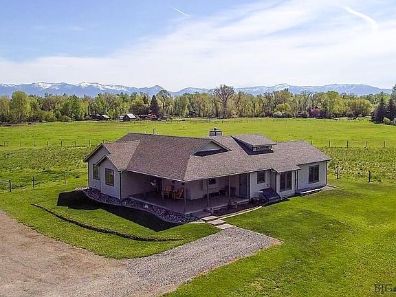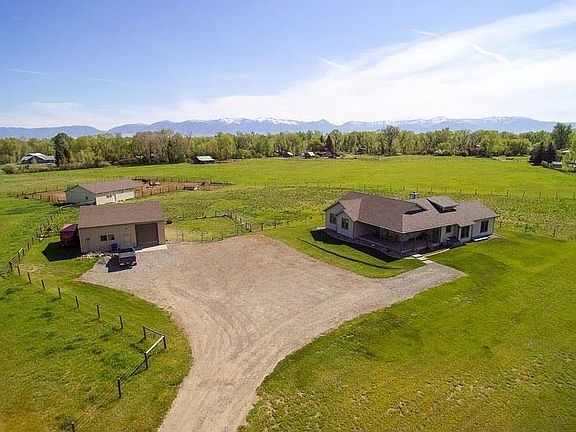 Beautiful ranch style home on 5 acres nestled among Cottonwoods & picturesque mountain views.This 2515 sq ft custom home has 3 bedrooms, Bonus Room (could be used as 4th bedroom), an office and 3 full baths. Home boasts quality hardwood floors, lots of windows, a wood stove & a stacked rock fireplace.Bring all your toys-there's plenty of storage in large heated shop/RV hook up.The barn has 4 stalls & tack room. Smooth wire/electric fenced. Peaceful country setting within 10 min to Bzn. Man. School Dist.