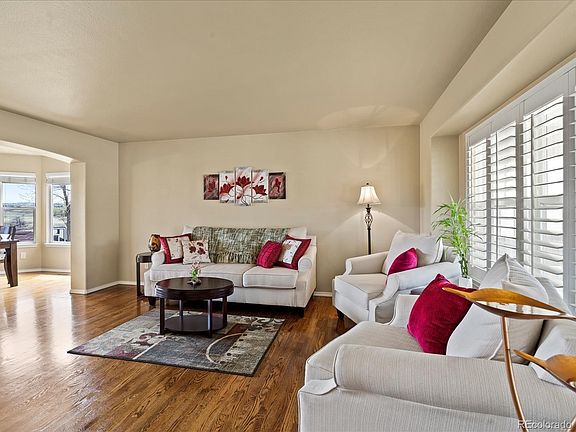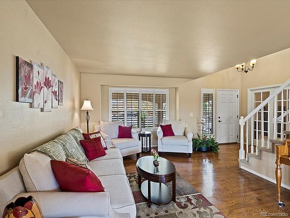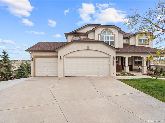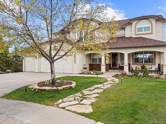 Tastefully upgraded D20 stucco home w/walkout basement. Cul-de-sac lot backs to 100+ acres of protected open space, including John Venezia Park. Front Range & Pike's Peak views from front of house. Warm hardwood floors in entry, LR, DR, kitchen. Formal LR with plantation shutters. French doors into main-level office with updated powder room across the hall. Gourmet island kitchen w/leathered granite counters, island seating for 6, painted Maple soft-close cabinets and drawers, double oven and Bosch induction cooktop. Walkout to a large deck with pre-wiring for a hot tub on the patio beneath. Vaulted great room w/gas FP and two-story windows. Main-level laundry with sink. Upper-level vaulted MBR with Peak views, plantation shutters and dramatic 5-piece spa bath including river rock floor in 2-head shower w/frameless glass and oversized porcelain tiles. 3 more upper BRs with walk-In closets and hall bath. Walkout basement with rec room, gas stove, wet bar, 3/4-bath with accessible shower and large linen closet, large BR with two entrances and two windows. Whole-house A/C, dog run with new stairs off laundry room, 16x12 storage shed, NO HOA. There is plenty of space for cars and toys in the finished 3 car garage. Sprinkler system with new backflow preventer moved indoors. Close to shopping, hospital, I-25 and Powers, walking distance to schools, and park! Come and see this incredible house and make it YOURS.