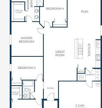 This elegant four bedroom home offers charm and practicality. Enter the foyer from the modest front porch. Upon entry, the foyer guides you to the impressive great room, past the bedrooms, and presents the open floor living space.