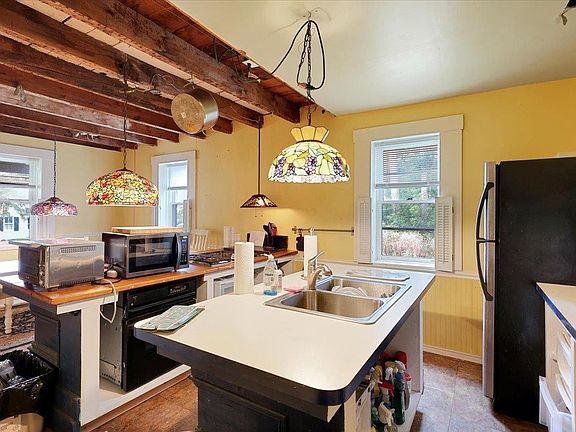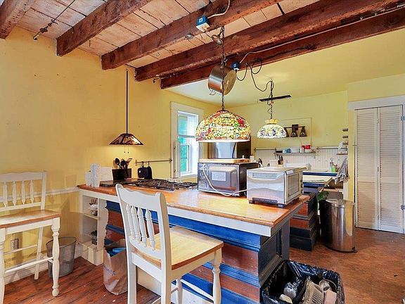 This incredible brick home is awaiting your personal touch. Offering abundant potential in a charming village setting, this home features a spacious kitchen with breakfast bar opening to a dining area, both showcasing wide pine flooring. The living room includes a wood stove and hearth, with access to an expansive back deck—partially enclosed—and a three-season porch to the side. Upstairs are two bright bedrooms, a 3/4 bath, plus a versatile den or office space. The tandem two-car garage accommodates three to four vehicles or provides excellent boat storage. Situated on 1.9 acres filled with flowers, gardens, winding paths, and mature trees. Conveniently located minutes from the Brick Store, near schools, town beach, Lake Champlain, and Route 7, with an easy commute to Middlebury and Burlington. Truelly a rare find!