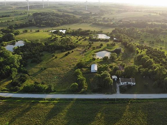 Placed in the heart of Madison County, these 19 acres offer country living at it's finest. The 2 bed 1 bath ranch style home was built in 1952 and has a great layout. Easy access to the basement make it ideal for storage or washing laundry. Two additional rooms were previously used as bedrooms, if a person is looking to expand. On top of what all this house has already, the large deck is the ultimate location for spending time with family and friends. There are several fruit trees in the yard as well as three additional outbuildings, which all have electricity ran to them. This property has 2 stocked ponds and offers endless recreational use for any outdoorsman. From chasing Iowa's renown whitetail deer, to raising livestock, or simply raising a family, acreages like this do not come available often! Property is sold as is. Barn Dimension - (barn 1 27x64, barn 2 36x60, barn 3 22x22)