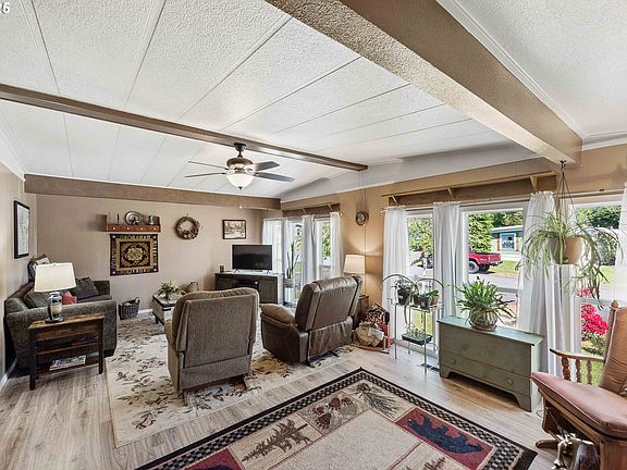 Charming 3-Bedroom, 2-Bath Manufactured Home with Modern Upgrades. Location is everything. Leaf Terrace is 55 and older must have park approval. This beautifully updated 1,344 sq. ft. double-wide manufactured home is a MUST SEE! Featuring a spacious and open floor plan, the home includes an only 2 year old heat pump and air conditioning for year-round comfort. Recent upgrades within the past two years include a new roof, interior and exterior paint, double-pane vinyl windows, and brand-new appliances. The kitchen is designed for both style and functionality with a built-in island that includes a wine rack, generous pantry space, and an open layout perfect for entertaining. The oversized primary suite offers a walk-in closet and a luxurious step-in soaking tub. Additional features include RV parking, a fully powered 8’ x 15’ tool shed, a covered patio, and a fenced yard for privacy, gardening and outdoor enjoyment. $780/month space rent. Don't miss this opportunity, home comes FULLY FURNISHED. Call and make an appointment with your agent today!
