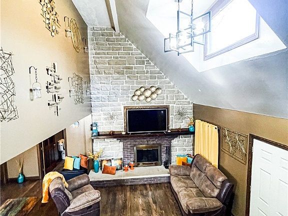 This stunning 4 bedroom 3 bath home located in Canton South has so much to offer. Main level of the home has 1 bedroom with en suite bathroom access, hard wood floors and built in cabinets/countertops. The living room features 20ft cathedral ceilings with a skylight, and a fire place on a beautiful custom stone wall. The open concept dining room gets extra natural light from its Bay window and has a breakfast bar looking into this stunning kitchen with custom concrete countertops and glass tile backsplash.