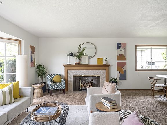 Have you been dreaming of living on a tranquil street, with sunset views of Forest Park? Longing for a quiet, private spot where you can still stroll to coffee, restaurants and bars? This sturdily built beauty might just be the place for you to call home. Bathed in natural light, the large living room with handsome fireplace and formal entry opens to the dining room, giving you plenty of room for entertaining all your friends and family. Past the dining area, step into the well-appointed kitchen to whip up some snacks for all your party guests that have decided to lounge in the attached family room, with its own cozy vibe and second fireplace. Once the party’s over you can retire to the primary bedroom, with ensuite, or lay your head in the second bedroom down the hall. In the morning, coffee in hand, the covered back patio beckons you to sit and greet the day. As you gaze out across your expansive backyard, lined with mature trees, shrubs, roses, and raspberries, the bees will be buzzing and the birds chirping. Situated on almost a quarter acre, with views for days, this 1959 two bedroom, two bath home is a rare find. Original mid century touches remain all through the home—Eisenhower tile in the bathroom, a gorgeous bay window in the living room, two grand wood-burning fireplaces, and lovely woodwork throughout. While maintaining the home’s classic style, thoughtful updates have also taken place including a new high-efficiency furnace and air conditioning. All this plus a large basement just awaiting your transformative touch, a dreamy two car garage, a long driveway to park all your vehicles, huge garden boxes for all your yummy vegetables, and an impressive amount of storage! Come find your peace in Portland. [Home Energy Score = 3. HES Report at https://rpt.greenbuildingregistry.com/hes/OR10237759]