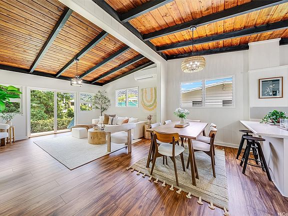 Welcome to 2935 Poelua Street, tucked away in the heart of lush Manoa Valley. 1st time ever on the market, this single-level 3-bed, 1.5-bathroom home offers the comfort and familiarity of traditional Hawai'i but with a modern touch. Vaulted ceilings & fresh interior and exterior paint create a bright, inviting atmosphere along with new luxury vinyl plank flooring and crisp tile in the bathrooms. All-new permitted 200-amp service & wiring, stylish new light fixtures, and a 2014 roof that was reinspected last year. A landscaped lawn invites you from the front. Out back, another spacious grassy lawn framed by tall trees provides a peaceful retreat while the gentle flow of Manoa stream(well below street level) adds to a serene setting. The quiet loop location is surrounded by longtime owner-occupant neighbors, offering both privacy & a true sense of community. With its charming curb appeal, natural surroundings, & thoughtful updates, 2935 Poelua Street is a special opportunity to own a home in one of Honolulu’s most beloved neighborhoods. Termite Fumigation + Warranty & Survey completed Aug 2024. **224sf lanai in rear of home was enclosed long ago & is not reflected in tax records.