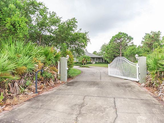 If you are a Golf Person who likes to entertain and loves Classic Cars or a Workshop for Hobbies- This CUSTOM DESIGNED, CUSTOM BUILT Home is for YOU! Custom Designed for entertaining around the pool with the Habitat Golf Course in your back yard and a Nature Preserve to your South, it is a Private Secluded Paradise! Custom Built of PowerWall Construction this stucco home is extremely energy efficient and very quiet, featuring many custom electrical upgrades such as recessed accent lighting inside and outside, low voltage lighting and entertainment features not found in track built homes. As you enter the 1.2 acre property, down the long concrete driveway to the electric privacy gate nestled in natural habitat and walk onto the columned front porch entering the leaded glass front door into the large foyer, you see the cozy Living Room on your right, perfect for reading or quiet conversations. On your left there is a spacious Dining Room with built in designer lighting, perfect for Dinner Parties and lots of Family Holiday Dinners. Passing into the large Family Room with the corner Wood burning Fireplace you immediately notice the high ceilings vaulting up from the ten foot ceilings throughout the rest of the house and the two sky lites allowing the natural light to fill the room. On your left is the open kitchen with the high “L” shaped Granite breakfast-bar and tons of Granite counter space underneath the custom, solid wood Natural Hickory cabinets including a Pantry cabinet with slide out shelves. In the center of the kitchen is a Granite Island with Glass Cooktop, this kitchen even has Double Ovens, and an eat-in area with hand made Natural Hickory table and seats. As you enter the spacious Game Room/ Bar, perfect for entertaining all your friends and family, you see the built-in wet bar. There is a beautiful view of the Swimming Pool through the 2 oversized pocketing Thermal Pane glass sliding doors which open up to the enormous Pavered screened patio surrounding the 15 X 30 foot swimming pool featuring a sitting ledge for sipping in the pool as you enjoy the view. The screened enclosure covers the entire back of the home all the way to the Garage/ Workshop even enclosing the Breezeway separating the two. The large Master Bedroom features 10 foot ceilings, corner windows providing lots of natural light, and easy furniture placement , as well as a patio door, with built -in mini blind, leading out to the pool patio. The Master Bath has raised height Natural Hickory cabinets with Granite counter tops, built in whirlpool tub, oversized walk-in glass shower, with His and Hers walk-in closets. The floor plan is Split, with three large Bed Rooms located on the other side of the Family Room as is the second Bath which feature double glass sinks and a tub- shower combo. There is a 2 1/2 car garage attached to the home with access through the laundry area with a pocket door opening to the kitchen and a short hallway to the Master Bedroom. Across the Breezeway is the 30X30 Garage/Workshop which has a 220v outlet, 30amp plug-in for a Motorhome and deep sink for all your projects. Upstairs above the Garage/Workshop is the Office Suite featuring a Kitchenette with Natural Hickory cabinets and counter tops that match the Kitchen in the main Home, a small wine bar with cabinet and countertop matching the kitchen. The suite has a spacious Bedroom, Bathroom with walk-in shower, an Office as well as a TV area and Dining area, which opens out on to the deck that overlooks the Habitat Golf Course. .Please note: Owner is a Licensed Florida Real Estate Broker.