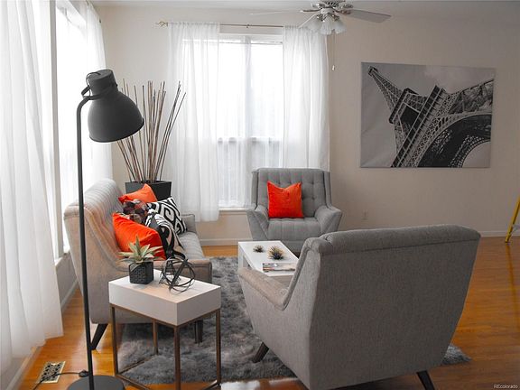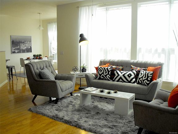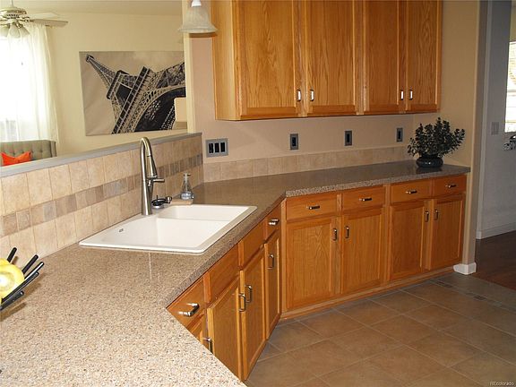 Bright, open ranch plan, lovingly cared for by original owners. Wood floors, granite counters, lots of light greet you. SW facing, energy efficient windows look out to many trees in landscaped back yard. Upgraded K cabinets w/roll outs. Formal dining room can also be used as Study/Den and the spacious breakfast room used for all dining. 3 BR main floor + 4th fully finished BR in mostly fin bsmt. w/egress window, 3/4 bath. Yard is huge wedge at end of cul-de-sac with mature trees and arbor. Lower deck hot-tub-ready w/220VAC connection. Fruit trees include Canada cherry, pear, crabapple. Enormous evergreens provide privacy, ambience year round. Basement is insulated, built out w/stud walls, electrical, some drywall, ready to finish, add carpet for a huge, useful family room. 3 yr old furnace is 96% efficient w/oversized filter. HOA park, playground, pet station 1 blk NW at Walden&Waco, nearby hike/bike trail with pond.