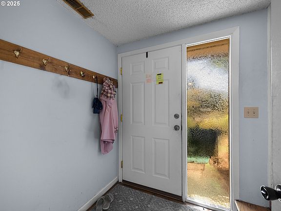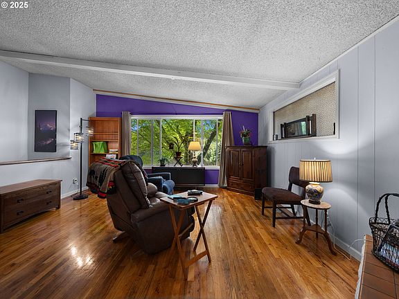 This charming home offers 3 bedrooms, 2.5 baths, and a total of 1,748 square feet across two levels. Built in 1964, it features a functional layout perfect for comfortable living and entertaining. The main living area boasts vaulted ceilings with exposed beams, hardwood floors, and a cozy wood-burning fireplace. Large windows provide plenty of natural light and lovely views of the mature yard. The kitchen opens to the dining space and offers ample storage and prep areas. An attached garage adds convenience, while the large yard with a covered deck and garden space is ideal for relaxing, planting, or hosting gatherings. Set in a quiet, established neighborhood, this home blends timeless character with modern potential—ready for your personal touch! [Home Energy Score = 5. HES Report at https://rpt.greenbuildingregistry.com/hes/OR10239869]