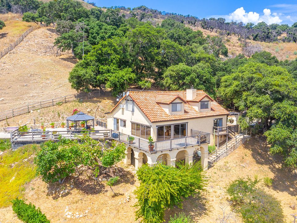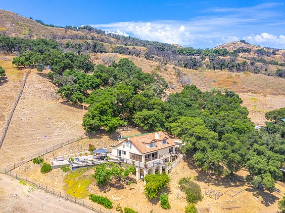 Perched high atop the hill, this nearly 20 acre fully fenced and cross fenced property offers the most spectacular panoramic views of Central Coasts Tepusquet Canyon. This incomparable property seems worlds away from the hustle and bustle, yet is mere minutes from Santa Maria, world famous Foxen canyon wine trail, schools, shopping and dining. The nearly 3100 square foot main residence boasts 6 bedrooms and 3 bathrooms. Custom Spanish tile work and details are through out and lend to the architecture and the style the builder intended. The living area features floor to ceiling glass overlooking the massive deck for even more viewing options. The remodeled kitchen is spacious with a large center, granite island as its focal point, custom cabinetry, counter tops, stainless appliance package and abundant storage. Additional inside features include, hand scraped hickory flooring, ceiling fans, custom rock fireplace, Central HVAC system, water softener, indoor laundry, service porch and main level master suite. Outside offers a 32 X 32 Mechanics shop/feed barn with upper level loft and storage area, trailer for ranch hand living, 2 on-line wells, 2 water storage tanks, chicken coop, numerous outbuildings, animal pens and automatic front entry security gate. If you have ever dreamed of living the ranch life, then this property is a must see.