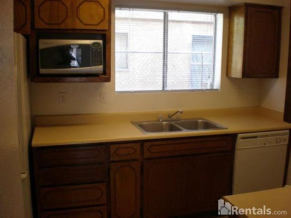 This is a upstairs unit of a 2 story 4 plex. Includes all appliances: Washer, dryer, refrigerator, stove/oven, and dishwasher. One covered and one uncovered parking space. Owner pays water, sewer and trash. Fenced back yard for everyone's use. Small storage room in back. Over 950+ Sq Ft. Walk in closet in master bedroom!