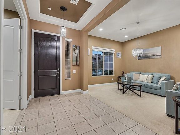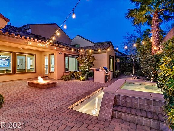 This popular floor plan is on a corner lot and has 3532 square feet of living space with 4 bedrooms, an office with double doors, a movie room /den, a large loft / game room and 3.5 bathrooms. The spacious great room is ideal for gatherings with large, picturesque windows to the backyard, fireplace, wall mounted TV and floating cabinets. A well-appointed chef’s kitchen features granite countertops and backsplash, large island with breakfast bar, walk-in pantry with ample storage, breakfast nook, stainless steel appliances, including double ovens, 5-burner cooktop, and built-in microwave. The formal dining room is connected to the kitchen via a butler’s pantry. The grand 1st floor master retreat is separate from the other bedrooms with a bay window, door to the backyard, large walk-in closet, 2 vanities, a soaking tub and a separate walk-in shower with 2 shower heads. Secondary bedrooms each have a walk-in closet and are connected by a Jack and Jill bathroom. The 2nd floor lives like an apartment with a bedroom, full bathroom, loft / game room that has a breakfast bar area with granite countertop, cabinets, sink and mini refrigerator. You can create your own theatre experience in the downstairs movie room. The laundry room has a sink, cabinets, and plenty of counter space. Throughout, you will find upgraded touches like custom lighting, ceiling fans, tank-less water heater, reverse osmosis and much more. Multiple outdoor areas are perfect for entertaining with a spacious gated front courtyard that has peek-a-boo city views and a backyard paradise, featuring a fire pit, built-in BBQ with refrigerator and sink, inground spa with water features, covered patio with ceiling fan, lush landscaping and a large side yard including fruit trees. Located in the prestigious 24-hour guard-gated Club Madeira. The newly renovated club house features a resort style pool and spa, tennis courts, basketball court, kids club room, library, massage room, fitness center with a full range of quality exercise equipment, and more. The Club Madeira neighborhood also has an extensive social calendar for all ages. Just minutes to award winning schools, shopping, coffee, gyms, restaurants, and freeway access. Call Mike Carlucci with Berkshire Hathaway at 702-461-4422 or go to www.ClubMadeiraHomes.com for more information.