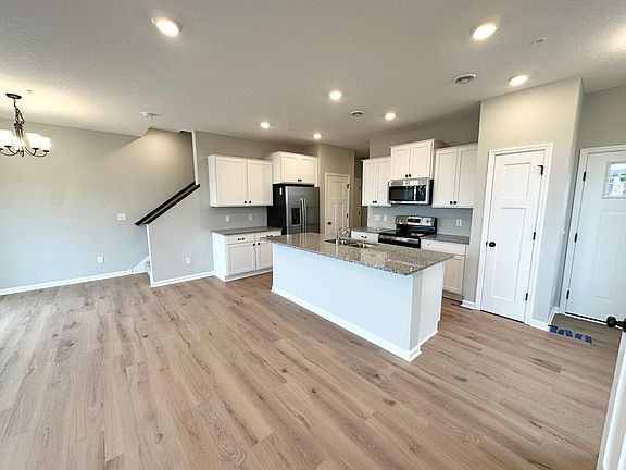 Our new Ashland Plan has a covered entry welcoming you into the foyer space with closet. The open layout has a well appointed kitchen with white cabinets, granite countertops, stainless GE appliances, luxury vinyl plank floors throughout, and a large island offering additional seating & storage. Easily entertain with the open layout leading to your family room with access to the patio to enjoy the outdoors. When entering from the oversized garage, a mud room and a bathroom awaits making the perfect drop zone after a busy day. Upstairs, the owner’s suite is a true oasis with private bathroom & walk-in closet. Two additional bedrooms share a full bathroom, and the laundry room is centrally located making laundry day a breeze. Close to shopping, restaurants, and new city park with play ground, sport courts and walking path. Acclaimed St. Michael schools with easy access to Hwy 94. Tour the on-site model today!