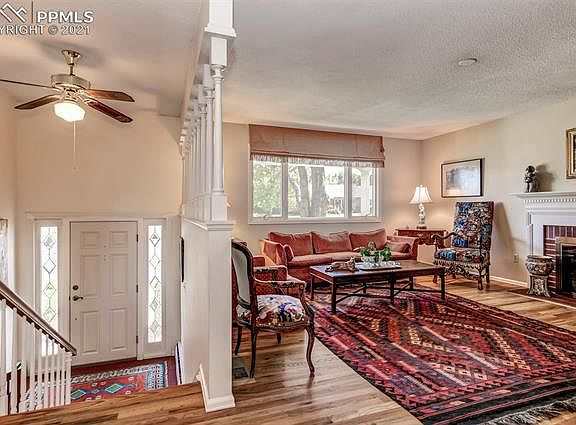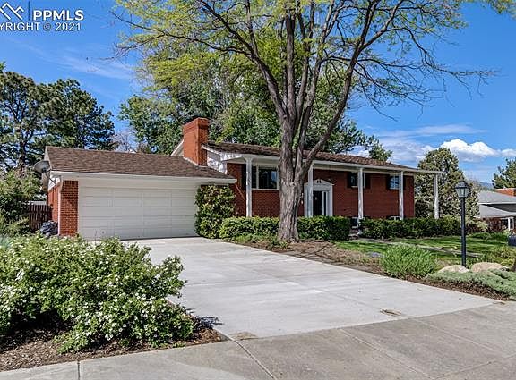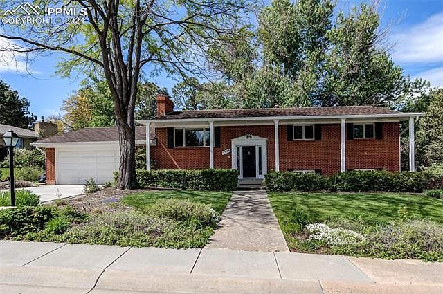 This is a stately, 5 bedroom, 3 bath Country Club, all brick, garden level, bi-level home. Walk to Colorado Springs Country Club Golf Course (or take the cart) and hiking and biking in 700 acre Palmer Park. All hardwood floors on main level. Walkouts on both levels. Hot water heat, two fireplaces, large lower level family room (30 x 16) is ideal for entertaining (pool table stays) and has wet bar and walkout to large patio. Yard is beautifully landscaped and has mountain views, large trees and garden area. Laundry shoot. heated garage is huge and has a workshop. Covered front porch has very nice bluff views. This is a great quiet neighborhood and close to downtown amenities.