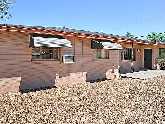 Mid-Century 4 Bedroom 2 Bath in Centrally located Hedrick Acreage. 2 Miles to the University of Arizona and just off Mountain Bike Path and CatTran Line. 1728 SQ FT. Wood Laminate or Tile Floors throughout. The 4th Bedroom has beautiful wood ceilings and a separate entrance. The Living Room has original cove ceilings and a picture window that provides great natural light. Designated Dining area with built-in cabinetry & Gas Insert Fireplace. The 3 Bedrooms in the main part of the home all have window shutters and ceiling fans. Hall bath has an updated vanity, shower enclosure, and tile surround. The large fenced yard could accommodate an ADU and already has a detached storage shed with a carport.