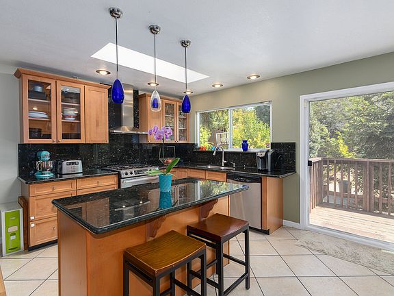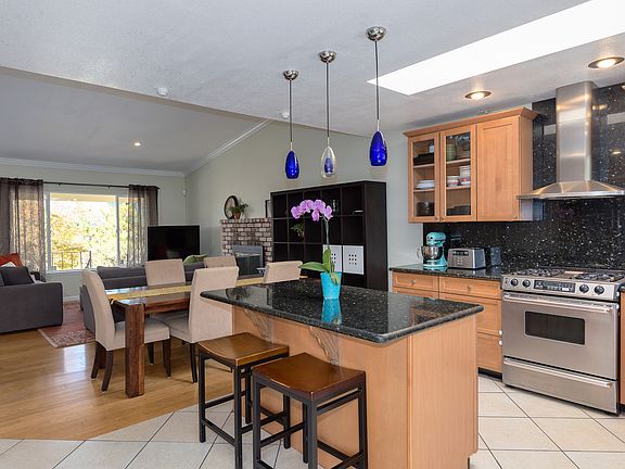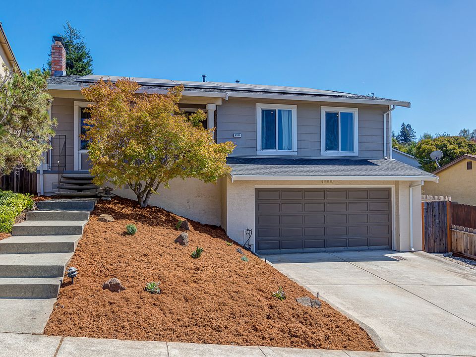 Beautiful Hayward Hills home. Level open floor plan. Spacious family room down stairs. Updated kitchen with granite counters, island w/seating, newly installed Jenn Air stainless steel appliances. Recessed lighting, vaulted ceiling in living room, crown molding, fire place w/gas starter, wood burning. Updated custom bath rooms, custom sinks & with granite counter tops. Spacious walk in shower in master. Newly landscaped backyard. Great location for commuters, minutes from BART, HWY 238, HWY 580. Walking distance to Don Castro Park. Newer water heater, garage door opener and high efficiency heater, A/C and leased solar.