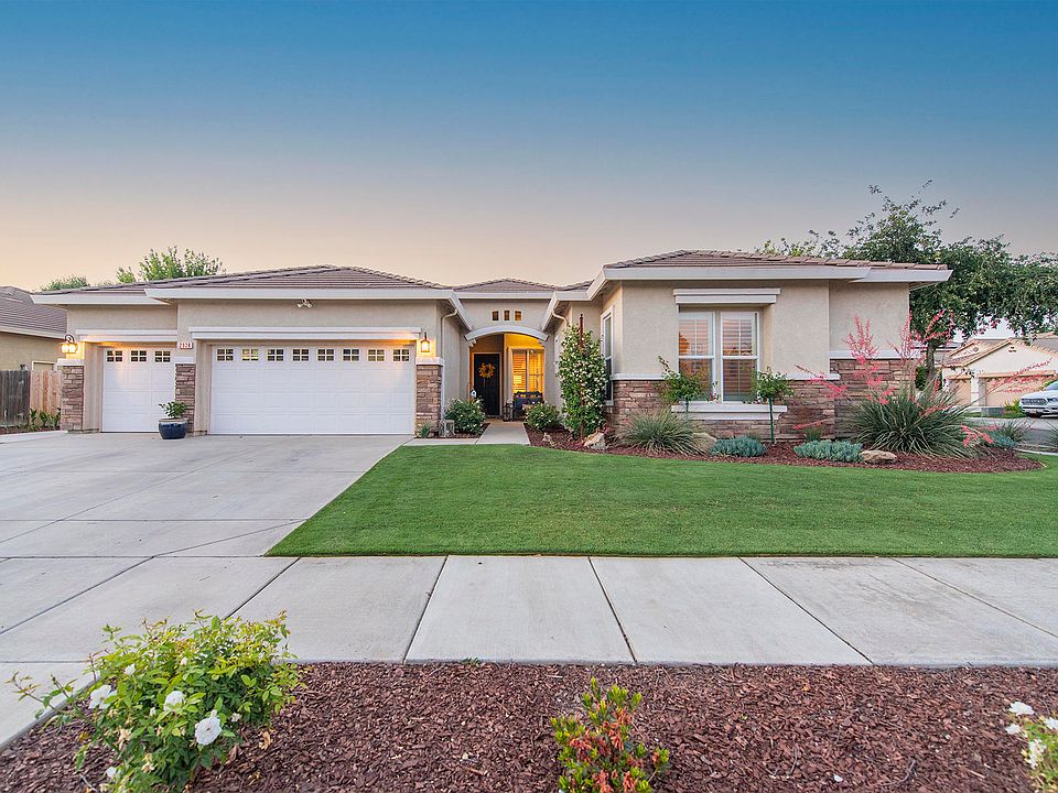 This beautiful, move-in ready home in Northwest Visalia sits on a corner lot with potential RV parking, 3 bedrooms, 2 bathrooms, with an office/den that could be used as a 4th bedroom, and a split floor plan. As you walk in the front door, you will notice plenty of natural light, beautiful archways, freshly painted walls, cabinets, and laminate wood flooring. The spacious kitchen features stainless steel appliances, white cabinetry, granite counter tops, decorative back splash, and pendant lighting. The lighting in this home has been redone to reflect an updated style. The living room has large windows, gas fireplace, new LED lighting, and more! Master suite is complete with a large walk-in closet, soaking tub, separate shower, and double vanity. The backyard is perfect for entertaining complete with a large outdoor movie screen, large concrete patio, landscape that has been redone, large area on the side of the house for a RV or additional storage, 240V outlet in the garage, and more