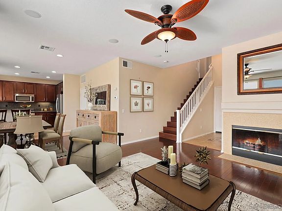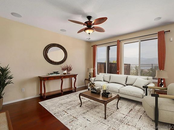 Rarely available Sonora Ridge home, best location in the complex. Gorgeous views of Otay Lakes and the mountains. This amazing residence features central AC, a cozy fireplace, recessed lighting, and hardwood floors throughout. An open floorplan with large windows basks the home in an abundance of natural light. A beautifully appointed kitchen with granite countertops, stainless steel appliances, and warm cabinetry with breakfast counter seating that opens to the living room. All bedrooms are upstairs including the spacious primary suite offering private balcony access with amazing views and its own en-suite bath with dual sinks, a relaxing jetted tub, walk-in shower, and a walk-in closet with built-in organizer system. Outdoor living has been extended to the low maintenance backyard featuring thoughtfully designed hardscape including an Aluma wood patio cover with recessed lighting, and low-maintenance landscaping, making it perfect for entertaining and taking in the views. Great community amenities include a sparkling pool, spa, and playground. Conveniently located, just minutes away from Mountain Hawk Park, recreational trails, great schools, shopping, dining, parks, Interstate 125, plus so much more. Don’t let this opportunity pass you by!