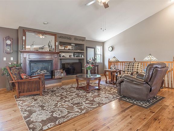 Welcome to this amazing ranch style home in tranquil Greatrock North! When you walk in, you'll be greeted with gleaming hardwood hickory floors, vaulted ceiling and open floor plan. The spacious living room provides the perfect setting for family gatherings next to the dramatic fireplace. You'll love the many windows taking advantage of the natural light pouring in and the elevated topography views. The kitchen features all stainless steel appliances, Corian style counter tops, tile back splash, island and beautiful cabinetry. Down the hall is the master bedroom with walkout entrance, en-suite bath and walk-in closet.Adjacent are two more bedrooms and full bath. In the walk-out basement, there is huge finished open family room and another gas fireplace. You'll also find another bedroom, full bath and flex room. Step outside on the massive Trex style deck, perfect for entertaining! Below is the 1512 sq ft horse/storage barn and chicken coup. 3 car garage. Soak it all in- you'll love it!