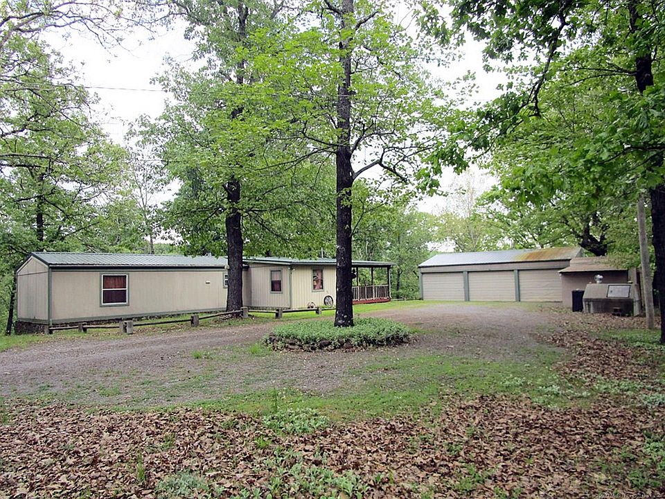 12 Acres m/l...includes 2 lots in Stones Throw. 2 Bed, 2 Bath Mobile w/large add-on. Covered front porch and covered rear deck. Hwy 82 frontage. Conveniently located near Elk Creek, Caney Ridge and Cherokee Landing. Abundant with tall pines and a wet weather creek. Detached 3 bay garage has electric and 2 door openers. Small storage bldg w/chicken coop and a really dry & clean storm cellar. Also has a RV carport.