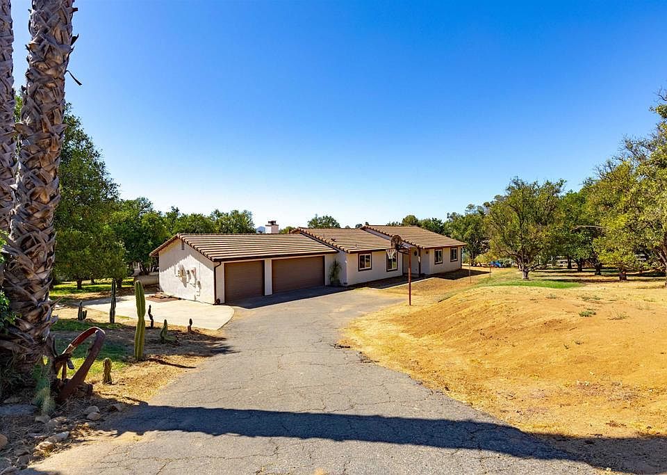 Back on the market. Discover the finest of Valley Center living in this beautiful one-story home, featuring 3 bedrooms and 2 full bathrooms, with a 3-car garage located in a private neighborhood. This residence offers a spacious 2.4 acres of land, perfect for the ultimate California country lifestyle, while also being convenient and accessible. The entire house has been updated with new retrofit windows, and vinyl flooring. The bathrooms have undergone a complete remodel as well. The upgrades include new appliances, quartz counter tops, and ceiling fans in every room. Solar system ownership for increased energy efficiency. The orchard contains fruit trees such as nectarine, plum, pear, guava, and avocado, as well as around 400 eucalyptus trees. You’ll have easy access to I15 freeway, schools, dining, public transportation, and the Valley Center golf course. There are no association or Mello Roos fees. - Welcome to your home!