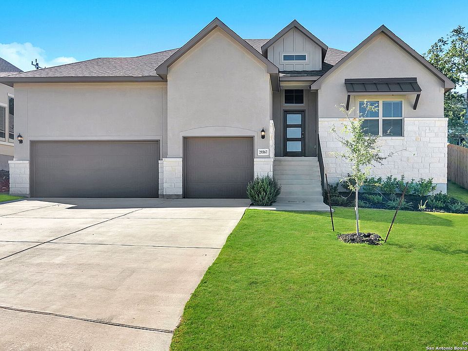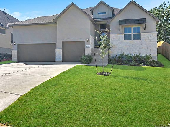 Elegance and Tranquility at Elkhorn Ridge, Fair Oaks Ranch - 29367 Cheyenne Ridge Discover the epitome of suburban luxury in our Gallatin plan, a stunning single-level home spanning 2,426 sq.ft. Nestled on a spacious 9,100+ sq.ft lot adorned with mature trees, this property offers privacy and beauty in the prestigious Fair Oaks Ranch community. The home features four bedrooms and three bathrooms, complemented by a formal dining room and a cozy breakfast nook, perfect for both casual and formal occasions. The three-car garage provides ample storage and convenience. Indulge in the luxury of the primary bathroom equipped with our exclusive Spa Shower upgrade and dual vanities, offering a spa-like retreat within your own home. This residence boasts an array of high-end upgrades including sophisticated flooring, custom cabinets, and designer tile work. Additional modern conveniences include pre-wiring for a home security system, pre-plumbing for a water softener, and a fully sodded and landscaped yard, ensuring that every detail has been taken care of. This home is move-in ready, waiting to provide its new owners with a blend of luxury, comfort, and peace. Enjoy a FREE complimentary one-year membership to Fair Oaks Ranch Golf & Country Club with your purchase!
