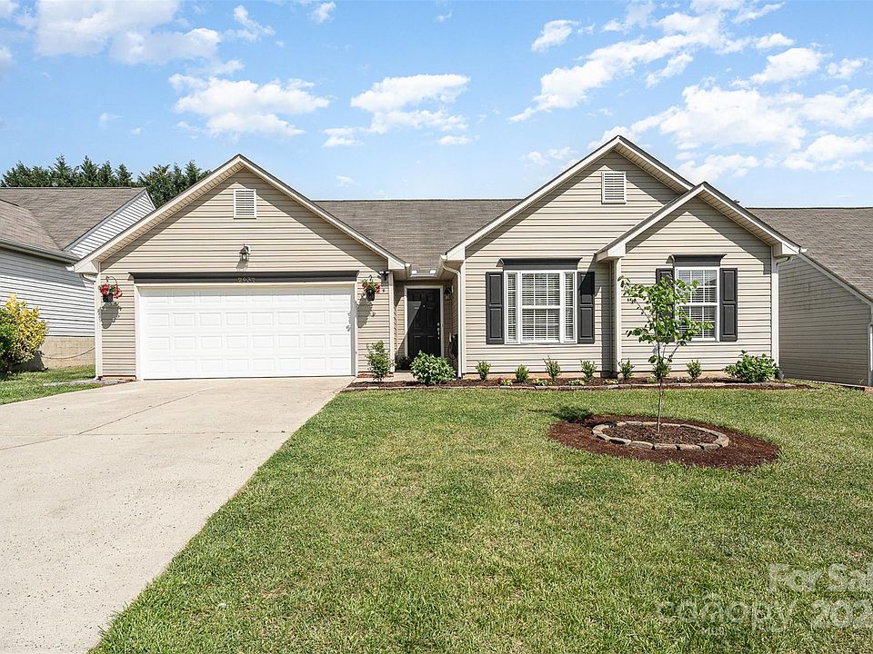 No HOA! Welcome to the sought after Riverwalk community. This move-in ready home has been nicely updated for you to enjoy. New laminate wood flooring in shared spaces, carpet in the bedrooms, and fresh paint throughout. All new stainless kitchen appliance package, new cabinets, quartz counters, sink, disposal, and all light and plumbing fixtures have been replaced. New vanities in both bathrooms with quartz counters, designer touches, and new tub and shower hardware. New light switches and electrical outlets throughout the home. New sliding glass door and new blinds at each window. A large two car garage features a new door and operating motor with keypad entry, and new shop lights. Attractive landscaping gives the home desirable curb appeal. Situated in a prime Concord location convenient to all the shops and restaurants around Concord Mills and major highways.